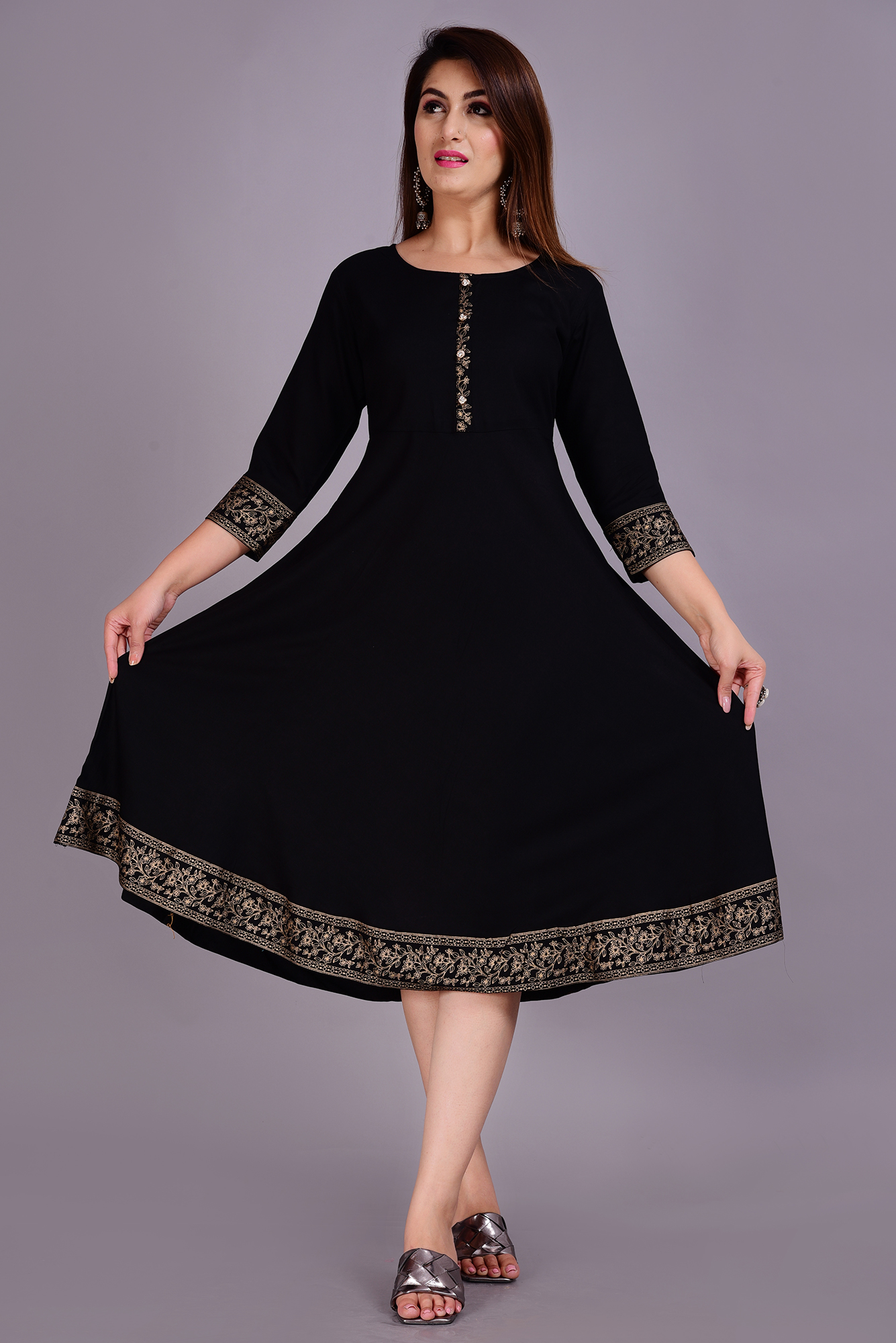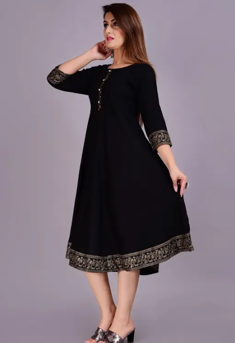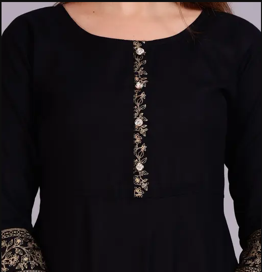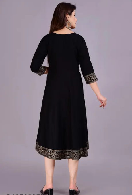 Name : Women Solid Rayon Anarkali (Black)